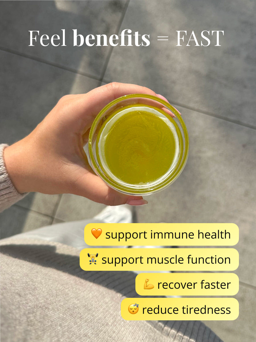 You can drink Immunity Hero anytime you need an extra boost for your immune system — especially during cold seasons, stressful weeks, or when you start feeling run-down.