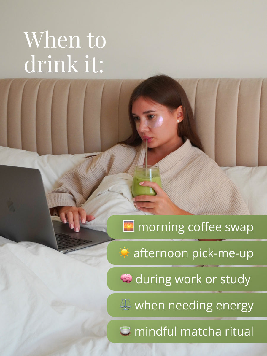 Matcha provides natural, even energy without jitters or sudden crashes, making it perfect for the morning or as an afternoon refreshment.