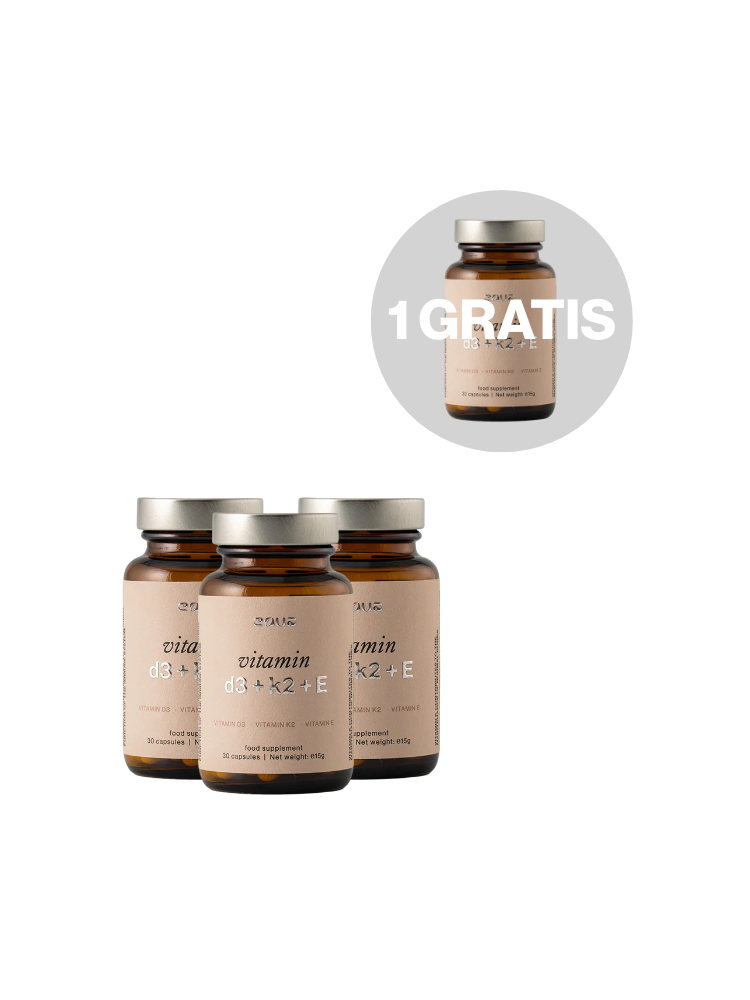 Bulking agent (microcrystalline cellulose), capsule (HPMC - hydroxypropyl methyl cellulose), vitamin K2 (menaquinone-7), vitamin D3 (cholecalciferol), vitamin E (tocopherol), anticaking agent (magnesium salts of fatty acids).
